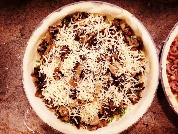Quiche met champignonmix en sjalottenfondue / gratinkaas